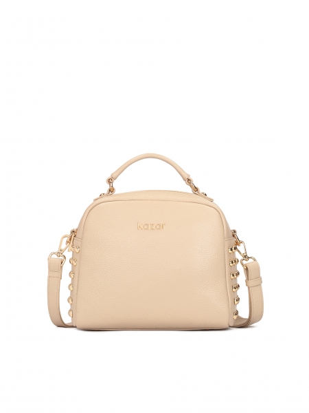 Dámské béžové baleríny z vysoce kvalitní kůže představují klasický model. Jemnou ozdobou je mašlička na špičce se zlatým logem KAZAR.