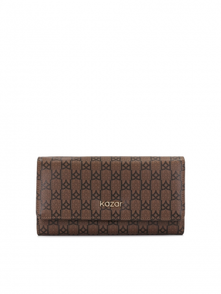 Objemná kabelka z kvalitní přírodní kůže v elegantní hnědé barvě je klasickým a stylovým doplňkem, který kombinuje funkčnost s propracovaným designem. Kabelka má dvě pevná ucha, která umožňují pohodlné nošení v ruce. Dno kabelky je vyztužené, což nejen zvyšuje její odolnost, ale také zajišťuje, že si kabelka udrží svůj tvar, i když je zcela naplněná. Díky tomu v ní můžete nosit různé předměty, aniž byste se museli obávat deformace tvaru. Ústředním ozdobným prvkem je kovová spona s monogramem, která kabelce dodává exkluzivní nádech.
