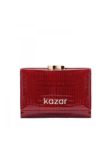 Malá společenská kabelka v podobě tuhé krabičky potěší svou červenou barvou a elegantním designem. Vysoce kvalitní lícová kůže, z níž je vyrobena, se krásně doplňuje se zlatým kováním. Zajímavým prvkem tohoto modelu je nápadná spona s vyrytým logem KAZAR. Okouzlující odnímatelný řetízek umožňuje nosit spojovací kabelku na rameni, takže její používání je velmi pohodlné.
