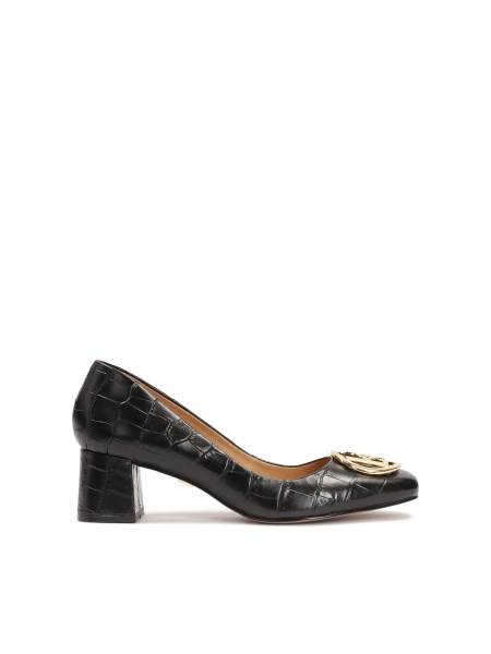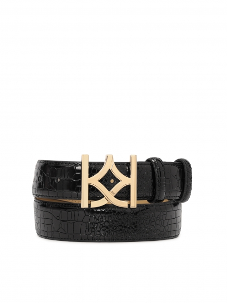Černá dámská peněženka z kvalitní lakované kůže s motivem krokodýlí kůže okouzlí minimalistickou formou a elegantním vzhledem. Klasický střih v univerzální černé barvě zdobí zlaté logo KAZAR. I přes své malé rozměry peněženka pojme platební karty, doklady, bankovky i mince. Elegantní, vysoce kvalitní peněženka si ukradne srdce žen, které se rády obklopují krásnými předměty. Vynikající kvalita materiálů a dokonalé zpracování zvyšují odolnost, kvalitu a estetickou hodnotu peněženky.