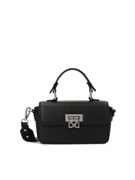 Sandály z kvalitní lícové kůže v neutrální černé barvě ohromují svým originálním designem. Klasický střih se zakrytým podpatkem a páskem kolem kotníku získává originální charakter díky zvýšené platformě na přední straně a efektně zdobeným páskům ze syntetiky. Elegantní podpatek výrazně pozvedá siluetu, přičemž zůstává velmi pohodlný, protože jeho výška je negována dvouvrstvou platformou. Originální sandály budou originálním doplňkem elegantních, večerních i příležitostných outfitů.