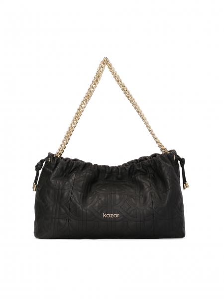 Sandály z lícové kůže v černé barvě jsou ideální volbou pro zvláštní příležitosti. Klasický střih s krytou patou a páskem kolem kotníku získává na originalitě díky zvýšené přední části. Štíhlý podpatek výrazně pozvedá siluetu a zároveň je velmi pohodlný, protože jeho výšku vyrovnává dvouvrstvá platforma. Originální sandály budou krásným doplňkem elegantních večerních šatů, které díky nim získají jedinečný půvab.