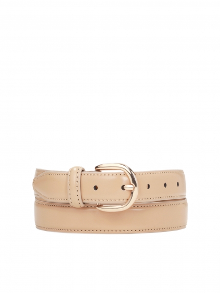 Béžový opasek se zlatou sponou je nepostradatelným doplňkem oblečení vyrobeným z kůže nejvyšší kvality, která zaručuje nejen odolnost, ale také výjimečné pohodlí při nošení. Opasek s univerzálním designem je ideální volbou pro každodenní i formálnější oblečení. Zlatá spona je nejen praktickým prvkem, který umožňuje snadné nastavení, ale také dodává jedinečný lesk. Díky vysoké kvalitě a pečlivému zpracování se tento doplněk jistě stane nedílnou součástí vašeho šatníku.