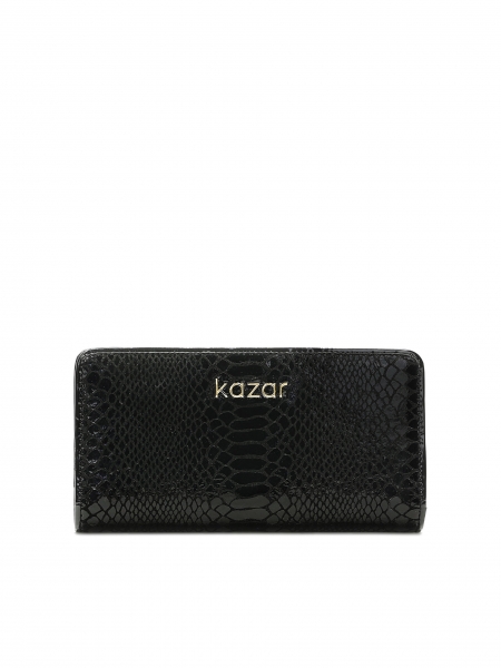 Velká černá peněženka z lakované kůže s reliéfním vzorem